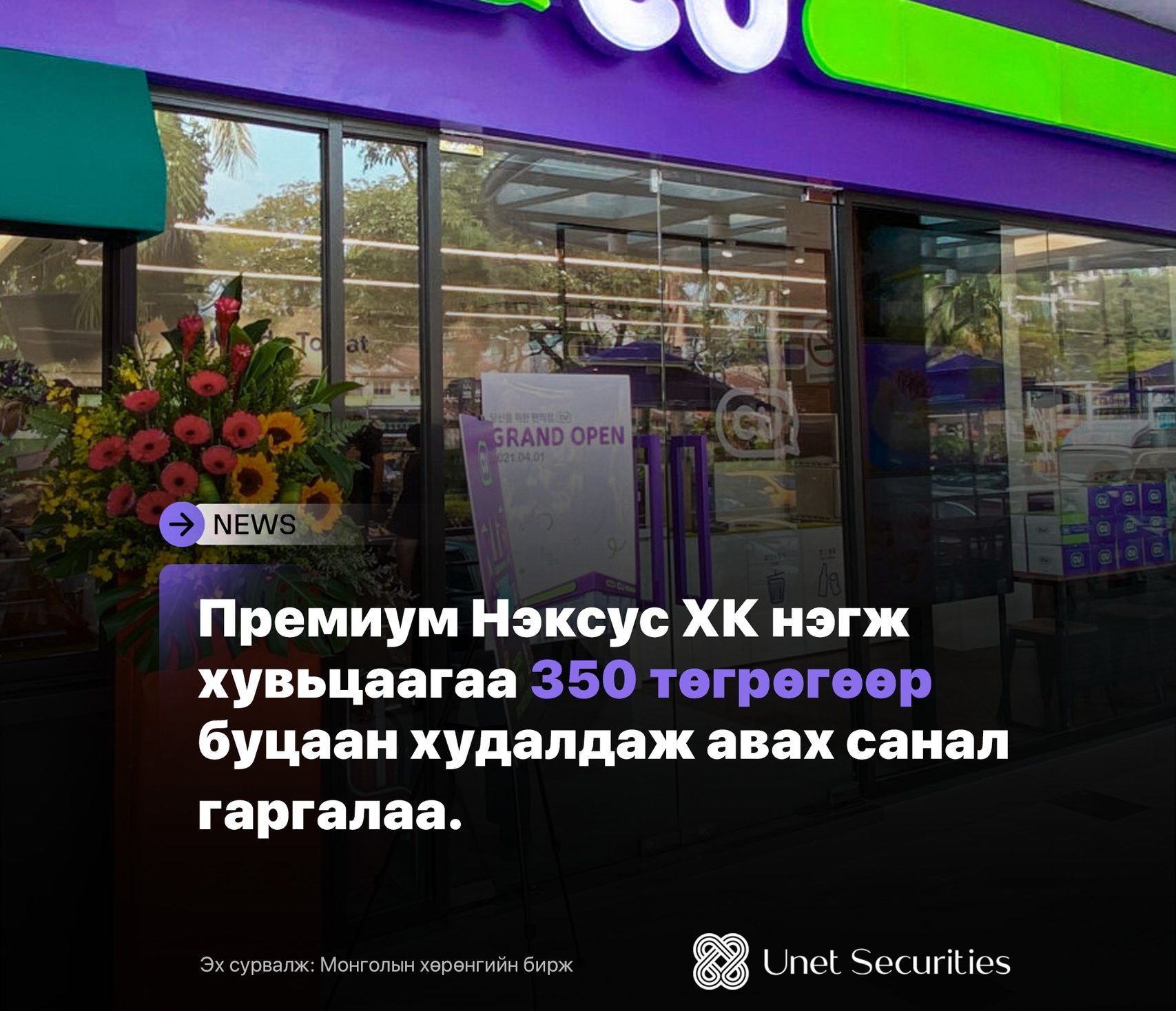 “ПРЕМИУМ НЭКСУС” ХК-ЫН ХУВЬЦААГАА 350 ТӨГРӨГӨӨР ЭРГҮҮЛЭН ЗАРАХ БОЛОМЖТОЙ БОЛЛОО.