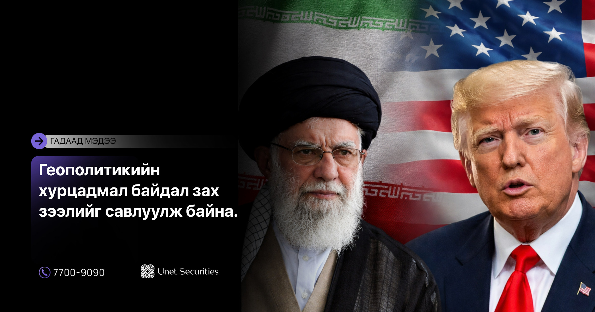 Сүүлийн өдрүүдэд дэлхийн хөрөнгийн зах зээл огцом уналт үзүүлж, гол индексүүд дараалан буурлаа. Үүний гол шалтгаан нь АНУ–Ираны хооронд үүсээд буй хурцадмал нөхцөл байдал гүнзгийрч, Ормузын хоолойн эргэн тойрон дахь эрсдэл эрс нэмэгдсэнтэй холбоотой юм.
